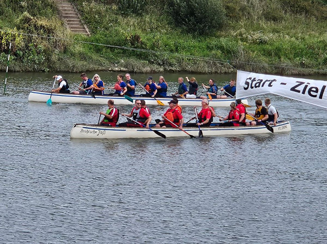(Foto: VfL Brohl) - Beim Neuwieder Wassersportverein (NWV) wird seit Juni diesen Jahres die Fun-Sportart, 10-er Canadierfahren, hobbymäßig betrieben. Die Sportler treffen sich einmal die Woche zum Training auf dem Rhein und haben dabei viel Spaß. Mitte September stand der erste Wettkampf an und zwar ging es zum 13. Spaß-Canadierrennen in den Brohler Hafen, an der 16 Mannschaften teilnahmen. Im ersten Ausscheidungsrennen zeigten die NWV-ler eine starke Leistung gegen den WSV Remagen und kamen mit einem Start-Ziel-Sieg verdient in die nächste Runde.