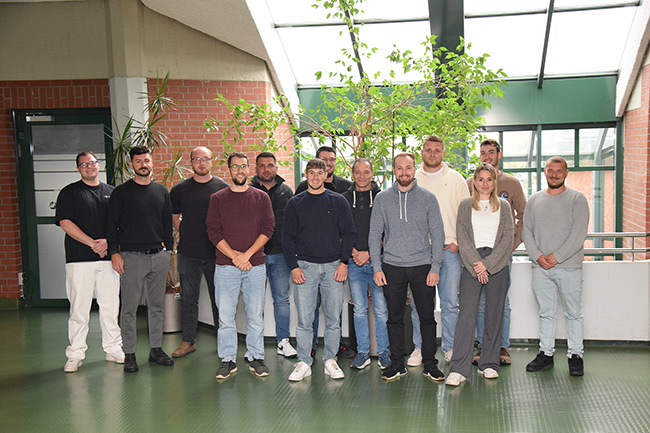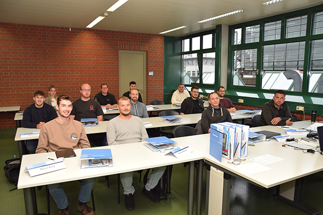 Die Teilnehmer der aktuellen HwK-Fortbildung zum Geprüften Betriebswirt nach der Handwerksordnung sind die neuen Gesichter im Metall- und Technologiezentrum in Koblenz, darunter (vordere Reihe, von links) Marvin Kunz und Roman Melcher, sowie (hintere Reihe, links) Isabeau Becker. / Foto-Quelle: HwK Koblenz (Denise Nuß)