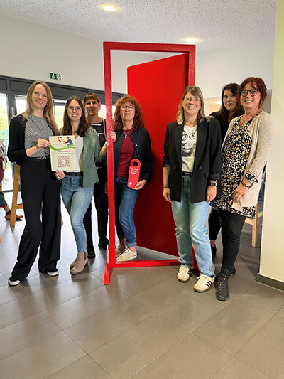 Zeichneten für den Fachtag verantwortlich und möchten dazu beitragen, die Tür zum Leben offenzuhalten: (v.l.n.r.): Janna Kleine-Huster, Nicole Bauer, Tanja Buchmann, Lisa Seibert-Atkins, Simone Höhner, Katharina Hamdan, Anja Bogdanski. Foto: Anna Sander