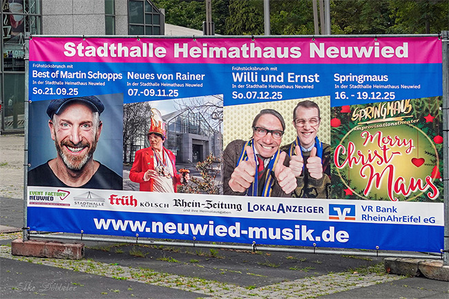 Eine Ära geht zu Ende – und nur noch bis zum Jahresende können wir in unserer Stadthalle Heimathaus Neuwied Veranstaltungen besuchen. Vielleicht möchte der ein oder andere das noch einmal ausnutzen. Aus diesem Grund habe ich Euch noch einmal die Stadthalle und den Aushang fotografiert.