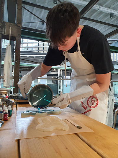 In unserer Hüttenwerkstatt fertigen wir bunte Zuckergüsse an, denen ausgewählte Sammlungsstücke wie kleine Skulpturen, Zahnrad oder ein Rehkitz Modell standen. Alle gießen ihr ganz individuelles und zuckersüßes Souvenir ihres Museumsbesuchs, das mit nach Hause genommen werden kann. Zwischendurch gehen wir auch gemeinsam auf Entdeckungstour durch die Sayner Hütte und die Kunstgussgalerie, wo wir sicher einige Vorbilder unserer Zuckergüsse wiederfinden.