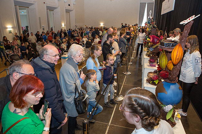 KOBLENZ / Foto-Quelle: Photo-Herzmann -  Koblenz wird zur Bühne der besten Chocolatiers Deutschlands und darüber hinaus: Mit beeindruckenden Kunstwerken aus Schokolade, fesselnden Vorführungen und köstlichen Gaumenfreuden zeigt das siebte Championnat du Chocolat à Coblence der Handwerkskammer (HwK) Koblenz erstmals in der Rhein-Mosel-Halle, wie Schokolade sowohl in Form als auch Geschmack neu interpretiert wird. Hochwertige Erzeugnisse, von ausgefallenen Schokoladentafeln über zartschmelzende Pralinen bis hin zu erlesenen Trüffeln, Weinen und Spirituosen, laden zum Probieren und Kaufen ein und versprechen aromatische Genussmomente. Faszinierende Live-Shows schärfen den Blick für die große Kunst des Konditorenhandwerks und liefern viele Anregungen für die eigene Küche. Veranstaltungsmagnet sind seit jeher die filigran gestalteten und oft meterhohen Schokoladenschaustücke, mit denen die Teilnehmer der deutschen Meisterschaft Tausende von Besuchern des Championnats ins Staunen versetzen.