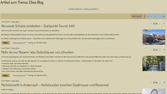Veröffentlicht werden viele Beiträge auch unter „Elkes Blog“, der persönliche Einblicke, Geschichten und Bilder aus Neuwied und Umgebung bietet.