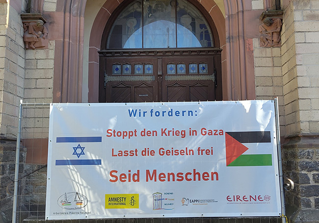 Konkrete Forderungen an die israelische Regierung hatte der palästinensische Erziehungswissenschaftler Sami Adwan, der schon oft in Neuwied war, den Veranstaltern geschrieben: "Hört auf, in Gaza Säuglinge, Kinder, schwangere Frauen und ältere Menschen auszuhungern, und lasst Lebensmittel, Wasser, Medikamente und Kochgas nach Gaza. Hört im Westjordanland auf mit den gewalttätigen Angriffen jüdischer Siedler auf Palästinenser. Hört auf, Siedlungen zu bauen und Siedler zu bewaffnen!"