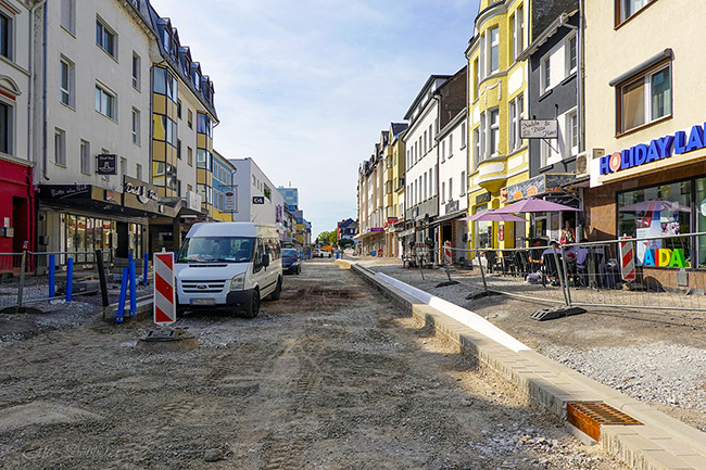 Wer an diesem Tag die Schlossstraße entlangging, konnte sich schon vorstellen, wie es im kommenden Jahr aussehen wird, wenn diese Baustelle komplett fertiggestellt ist. Lange dauert es nicht mehr – die ersten Bordsteine auf der anderen Seite sind bereits gesetzt.