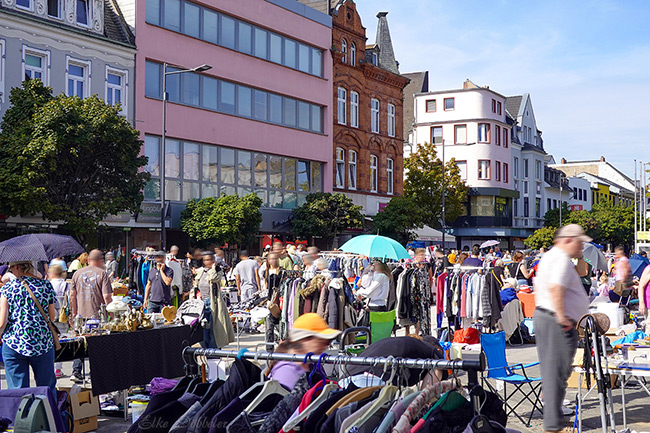 Und was war der Luisenplatz voll mit Ständen! Von dort zog sich das bunte Treiben über die Langendorfer Straße bis hin zur Luisenstraße – und auch auf dem bereits fertiggestellten Stück der Schlossstraße herrschte reges Leben. (Ironie an: Es war also – wie immer – nichts los in Neuwied. Ironie aus)