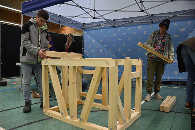 Zeit, zu machen: Beim Tag des Handwerks sind die Möglichkeiten, sich zu präsentieren so vielfältig, wie das Handwerk selbst: Ob bei einer Betriebsführung, der Möglichkeit für Besucher, selbst Hand anzulegen, wie hier im Gewerk der Zimmerer bei einer Jugendmesse oder der Vorführung typischer Handgriffe: Die Betriebe im Kammerbezirk der HwK Koblenz haben die Gelegenheit, sich mit Projekten, Aktionen oder Gesprächen persönlich vorzustellen und für das Handwerk zu werben. / Quelle: HwK Koblenz (Dagmar Schweickert)