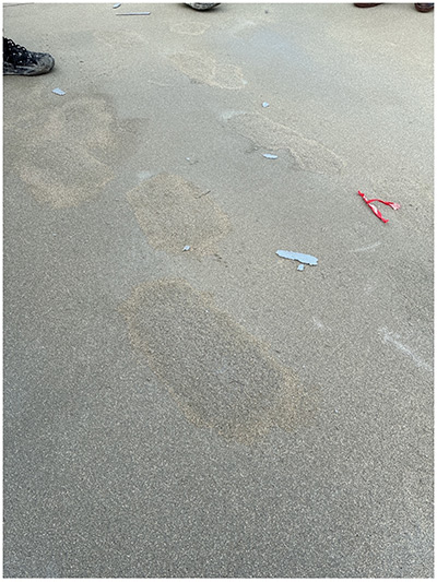 Bereits im Sommer 2025 musste ein Vandalismusschaden am fertiggestellten Bauwerk vermeldet werden. Hier sind Passanten durch den frisch aufgetragenen Belag gelaufen und haben Fußspuren hinterlassen. Leider ist das Durchgangsverbot weitere zweimal nicht beachtet worden, sodass der Vandalismusschaden erneut auftrat.
