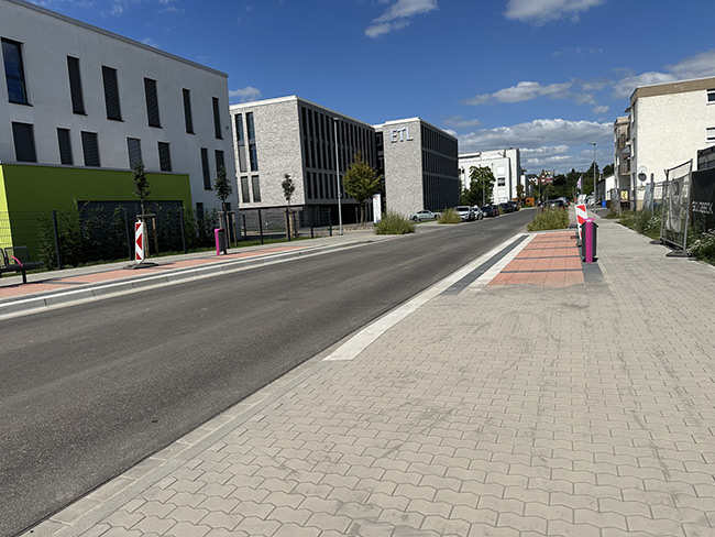 In der Peter-Klöckner-Straße wird der Radverkehr auf der Straße mitgeführt. Für Fußgänger gibt es nun auf beiden Seiten einen Bürgersteig. (Foto: Stadt Koblenz/ Mandy Steffens)