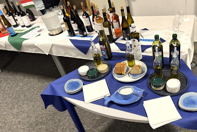 Theorie und Praxis griffen eng ineinander. In einer Verkostungszone probierten die Teilnehmenden Weiß-, Rosé- und Rotweine, verglichen Eindrücke und kamen ins Gespräch. Ländertypische Speisen begleiteten die Verkostung und machten die Herkunft der Weine auch kulinarisch erfahrbar. Serviert wurden unter anderem georgisches Chatschapuri und Badridschani, ungarischer Salamisalat und Gulaschsuppe sowie griechisches Hähnchen Gyros, Fasolada und Bifteki.