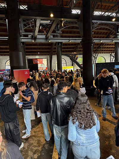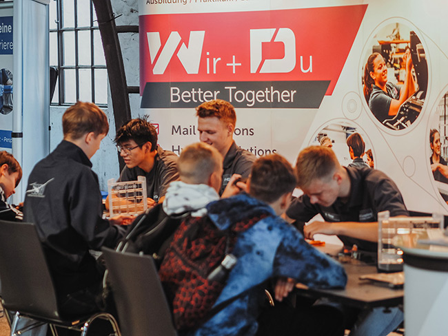 Mit Bussen kamen die rund 1000 jungen Gäste an der Sayner Hütte an. Vor und in der Halle wurde ein abwechslungsreiches Informations- und Rahmenprogramm geboten. Neben der Gelegenheit, sich über verschiedene Karrieremöglichkeiten zu informieren und regionale tarifgebundene Unternehmen kennenzulernen, konnten sich die Schülerinnen und Schüler an zahlreichen Mitmachangeboten ausprobieren. Zusätzlich war die Jugend-Arbeitsagentur mit einem Bewerbungscheck präsent und ein Fotostand bot Gelegenheit, direkt Bewerbungsfotos mitzunehmen.