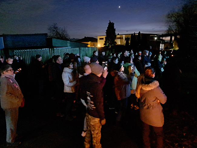 Zahlreiche gespannte Gäste warten jedes Jahr auf die Enthüllung des neuen Adventsfenster-Motivs der Pfadfinderinnen und Pfadfinder. Fotos: FH