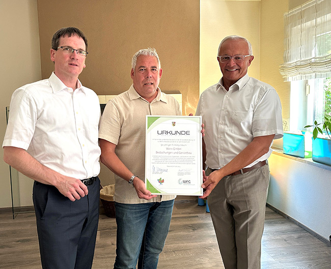 Landrat Achim Hallerbach und Kreiswirtschaftsförderer Harald Schmillen gratulierten Dachdecker-Traditionsfirma Winn