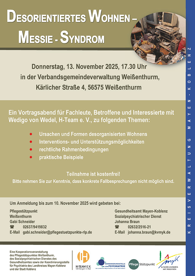 KREIS MYK. Unter dem bundesweiten Motto „Lass Zuversicht wachsen – Psychisch stark in die Zukunft“ findet in diesem Jahr vom 10. bis 20. Oktober die Woche der „Seelischen Gesundheit“ statt. Der Landkreis Mayen-Koblenz und die Stadt Koblenz beteiligen sich mit einem vielseitigen und informativen Aktionstag am Freitag, 10. Oktober – dem Internationalen Tag der Seelischen Gesundheit, von 9 bis 13.30 Uhr im Gesundheitsamt Koblenz, Mainzer Straße 60a, ebenfalls an der Aktionswoche. Veranstalter sind die Koordinierungsstelle für Psychiatrie und das Gesundheitsamt Mayen-Koblenz.