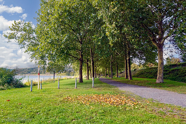 Schaut mal, was ich bei einem Spaziergang entdeckt habe! Zwischen all den Wolken lugte doch tatsächlich die Sonne hervor und tauchte die Irlicher Rheinanlagen in ein wunderschönes Licht. Das ist so ein liebevoll gestaltetes Fleckchen Erde – viel Grün, einladende Bänke und eine wunderschöne Baumallee.