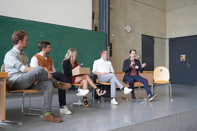 Nach der Mittagspause fand eine abschließende Fishbowl-Diskussion zum Mitmachen statt. Grünen-Politiker Carl-Bernhard von Heusinger, Henrik Lenzgen (Mehr Demokratie e.V.), Michell Dittgen (Deutsche Gesellschaft für Demokratiepädagogik e.V., Vorsitzender des Landesverbands Rheinland-Pfalz) sowie Jannis Graber (Referent für Strategische Steuerung Nachhaltigkeit in der Staatskanzlei Rheinland-Pfalz), diskutierten mit den Schüler*innen und interessierten Bürger*innen über aktuelle Herausforderungen der Demokratie.