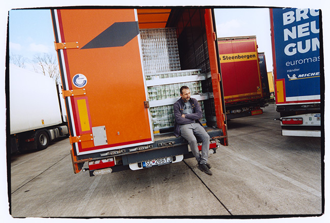Die Ausstellung beschäftigt sich mit internationalen LKW-Fahrern aus osteuropäischen Ländern und Drittstaaten, die einen großen Teil ihres Berufslebens auf Europas Straßen verbringen. Die fotografischen Arbeiten geben Einblicke in ihren Arbeitsalltag zwischen Fahrten, Wartezeiten und Aufenthalten auf Rastplätzen.