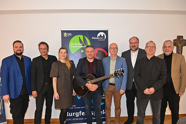 Mayen. Ein mitreißendes Schauspiel, ein fantasievolles Familienstück und ein bereits bekanntes Bürgerstück über Mayens lebendige Tanzvergangenheit – das sind nur einige der Höhepunkte, die Oberbürgermeister Dirk Meid, Intendant Alexander May und Verwaltungsleiter Kevin Stoye auf der Pressekonferenz zu den Burgfestspielen 2026 präsentierten.