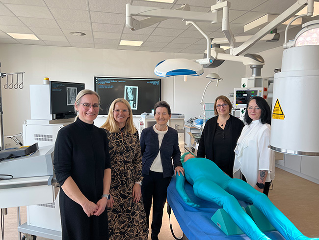 Dank einer großzügigen Spende der Stiftung Ev. Stift St. Martin können angehende Medizinische Technologinnen und Technologen für Radiologie (MTR) nun unter realistischen Bedingungen üben, was später im Klinikalltag zählt: Präzision, Fachwissen und Sicherheit im Umgang mit moderner Diagnosetechnik. „Gerade bei der Arbeit mit Strahlung am Patienten gilt es, viele Faktoren genau zu beachten“, erklärt die fachliche Leiterin der MTR-Schule Claudia Görlach und ihre Kollegin Nicole Remagen ergänzt. „Unsere Auszubildenden lernen, sämtliche Geräteeinstellungen gezielt anzupassen, um anatomische und pathologische Strukturen sicher und fachgerecht beurteilen zu können. Das Besondere dabei: In der Simulation darf man Fehler machen – und daraus lernen.“