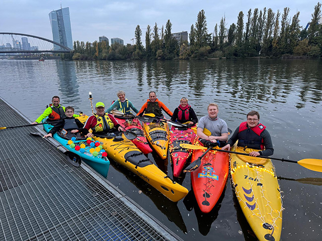 (Fotos: Marion Bermel ) - Der Frankfurter Kanu-Verein richtete am Samstag, 11. Oktober die 42. Frankfurter Funzelfahrt, eine Traditionsfahrt bei Nacht, auf dem Main aus. Unter den knapp 100 Teilnehmern waren auch acht Kanuten des Neuwieder Wassersportvereins (NWV), die sich dieses tolle Ereignis nicht entgehen lassen wollten. Gegen 16.30 Uhr starteten die Sportler mit ihren toll geschmückten und beleuchteten Booten in Richtung Offenbacher Schleuse bis zum „Ruderdorf“ Oberrad.
