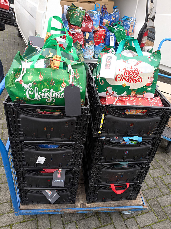 An allen Adventssamstagen kamen ca. 600 gefüllte Lebensmittelkisten und mehr als 100 befüllte Geschenkekisten zusammen. Nicht mitgezählt sind die Lebensmittel und Geschenke, die bereits unter der Woche gespendet wurden.
