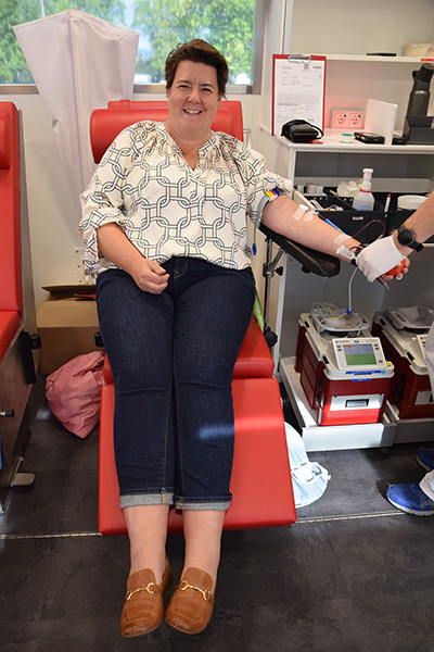 Viele HwK-Mitarbeiter spendeten bei der Jubiläumsaktion der HwK - und offiziell genehmigt während ihrer Arbeitszeit - im DRK-Blutspendemobil Blut. / Foto-Quelle: HwK Koblenz / Dagmar Schweickert