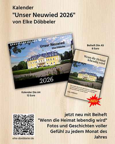 Der Kalender „Unser Neuwied 2026“ (DIN A4 für 12 Euro / DIN A3 für 18 Euro) und das Beiheft „Wenn die Heimat lebendig wird“ (DIN A5 für 8 Euro) sind erhältlich bei: