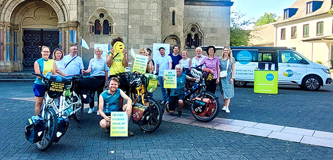 (Foto: KV Mayen-Koblenz/Meike Koch) Unter dem diesjährigen Motto “Mut zur Selbsthilfe – Unterstützung sichtbar machen!” fahren und wandern zwölf Etappen-Teams mit rund 70 Teilnehmern durch ganz Deutschland, dabei sprechen sie unterwegs mit Interessierten, um für einen offenen Umgang mit Depressionen sowie anderen psychischen Erkrankungen zu sensibilisieren.