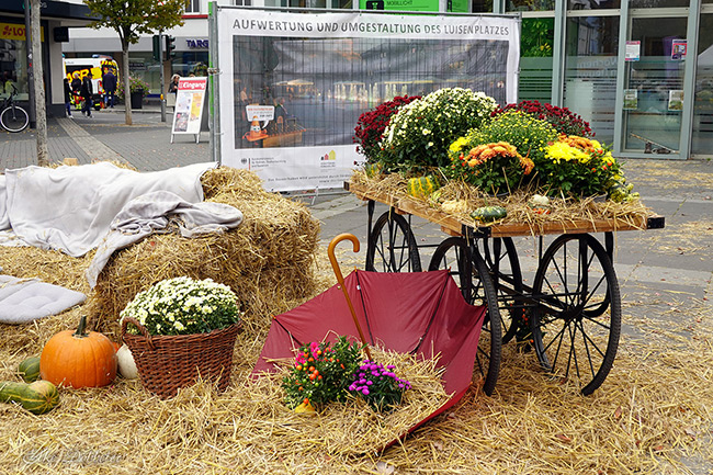 Die Bäume rundherum leuchteten in einem so satten Gelb und Orange, dass man die Sonne bald gar nicht mehr vermisste. Und wie immer hat sich die Stadt richtig ins Zeug gelegt: Überall rund um die Markttage – vom Luisenplatz bis hin zur Langendorfer Straße – sorgten herbstliche Dekorationen für eine stimmungsvolle Atmosphäre. Zwischen den Ständen gab es allerhand zu entdecken: liebevoll präsentierte Waren, bunte Handwerkskunst und natürlich vieles Leckeres zu essen und zu trinken.