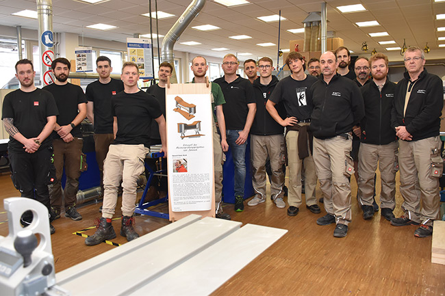 Sie stellten sich der diesjährigen Meisterprüfung im Tischlerhandwerk bei der Handwerkskammer Koblenz, links die Mitglieder des Meisterprüfungsausschusses und die Meister-Ausbilder der HwK. Foto-Quelle: HwK Koblenz / Jörg Diester