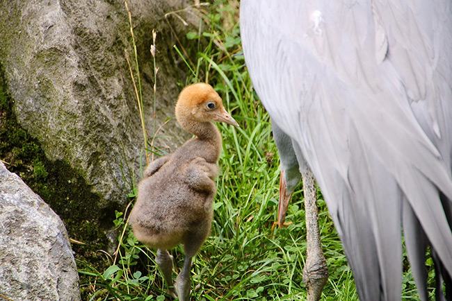 Neuwied, 26. September 2025 – (Foto: Ben Ulrich) - Schon seit über 30 Jahren werden Paradieskraniche im Zoo Neuwied gehalten. Das aktuelle Pärchen der imposanten blaugrauen Vögel mit den auffällig langen Federn ist bereits seit 2004 zusammen, hatte jedoch noch nie Nachwuchs – bis jetzt! Jonas Feinkohl, der Revierleiter des Vogelreviers, ist hoch erfreut: „Nach den Saruskranichen, die ebenfalls nach jahrzehntelanger Haltung im vergangenen Jahr erstmals erfolgreich Nachwuchs großgezogen haben, ist dies nun die zweite Kranich-Art, bei der unsere Bemühungen endlich belohnt werden.“