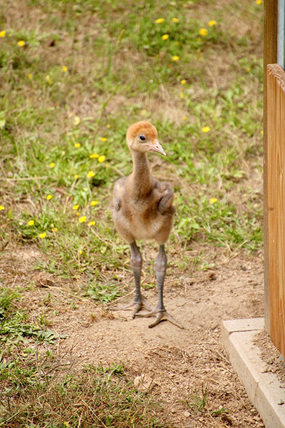 Mittlerweile ist der Jungvogel bereits fünf Wochen alt und ordentlich gewachsen. Nach dem Laborergebnis einer untersuchten Federprobe kann der Tierpfleger auch das Geschlecht des Kükens verkünden: „Es ist ein Männchen! Das EEP, über das die Zoopopulation der bedrohten Art in Europa koordiniert wird, ist bereits informiert und wird entscheiden, in welche Einrichtung der Jungvogel in ein paar Monaten umziehen soll.“ Nachdem die Zucht jetzt erstmalig geklappt hat blickt Jonas Feinkohl optimistisch in die Kranich-Zukunft: „Eine Naturbrut werden wir erstmal nicht anstreben, das steht erst wieder auf dem Programm wenn unser aktueller, mit 27 Jahren schon älterer Hahn einen Nachfolger hat, der die Eier in Ruhe lässt. Das Ziel für die nächsten Jahre ist es, den Zuchterfolg aus 2025 zu wiederholen – vielleicht dann ja sogar mit mehr als einem Küken gleichzeitig.“