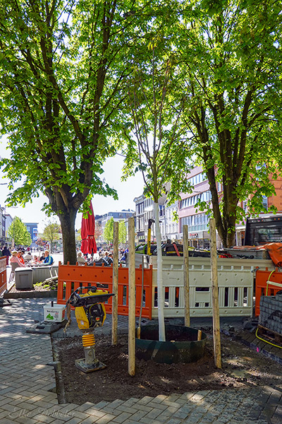 Erst auf den zweiten Blick haben wir zwischen Fahrzeugen, Geräten und Absperrungen die jungen Bäumchen entdeckt. Da zeigt sich mal wieder: Manchmal übersieht man das Wesentliche, wenn rundherum so viel los ist.