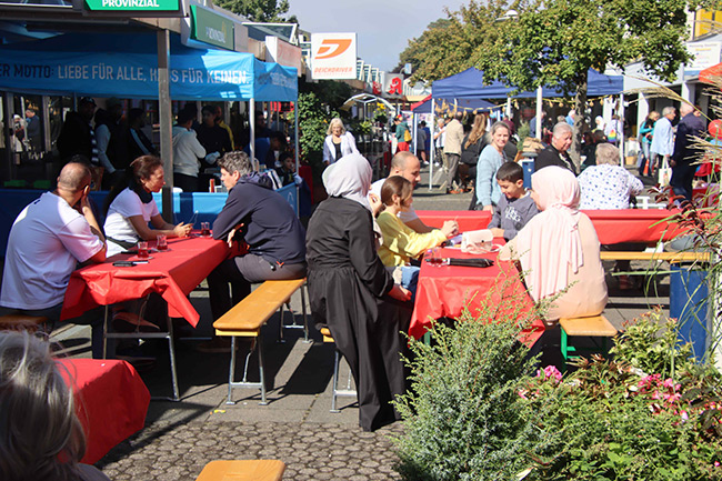 (Foto: Gabriele May) - Strahlender Sonnenschein, Musik, leckere Speisen und Getränke sowie Gespräche über das Gewohnte hinaus – dies alles konnte der Ringmarkt am 06. September bieten und ermöglichte, in ferne Länder einzutauchen. Der dortige Orientalische Markt des Quartiersbüros im Raiffeisenring hatte in diesem Jahr rund 500 Menschen angelockt, die das vielfältige Angebot für Jung und Alt erkundeten. Das eine Beschäftigung mit anderen Kulturen eine große Bereicherung ist, konnten sowohl die Besucherinnen und Besucher als auch die vielen ehrenamtlichen Helfer im Ringmarkt erleben. Bei der Veranstaltung kamen die Menschen miteinander ins Gespräch, tanzen miteinander und genossen die angebotenen Köstlichkeiten bei ausgelassener Stimmung.