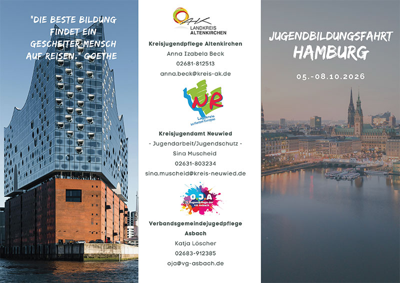 Angeboten wird die viertägige Jugendbildungsfahrt nach Hamburg von der Kreisjugendpflege Neuwied, der Kreisjugendpflege Altenkirchen und der Verbandsgemeinde-Jugendpflege Asbach.