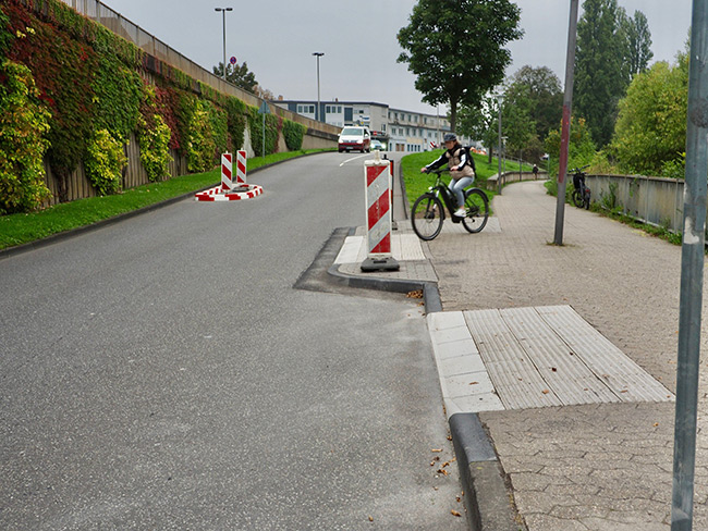 Da die Radverkehrsführung aus Richtung Mosel-Staustufe kommend nicht eindeutig ist und die Mitnutzung der Fahrbahn gegenüber dem Seitenraum als unattraktiv eingeschätzt wird, nutzen viele Radfahrende rechtswidrig den Promenadenweg. Die Nutzung des Gehwegs wird zusätzlich begünstigt durch zu hohe Geschwindigkeitsunterschiede zwischen Kfz- und Radverkehr sowie durch nicht eingehaltene Mindestüberholabstände von mindestens 1,50 m. Dadurch kommt es zu Konflikten zwischen Fuß- und Radverkehr auf dem Promenadenweg sowie zwischen Rad- und Kfz-Verkehr auf der Fahrbahn.