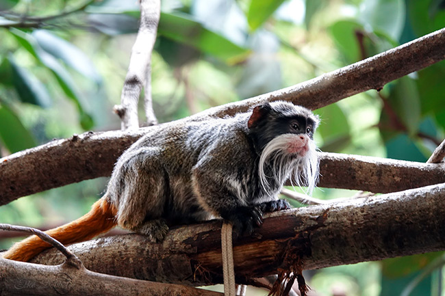 Oder Du bleibst gelassen, ruhig und mit einem Hauch weiser Unaufgeregtheit – wie ein Kaiserschnurrbarttamarin mit seinem beeindruckenden Blick.